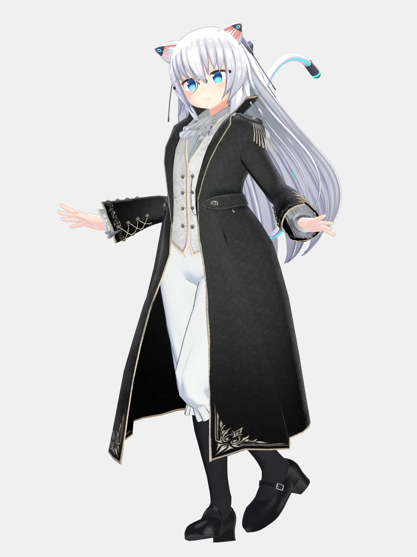 クラシック楽器を色々持たせたくて調整したますきゃっとです。華やかなジャケットとドロワーズで古風な音楽家のシルエットにしました。