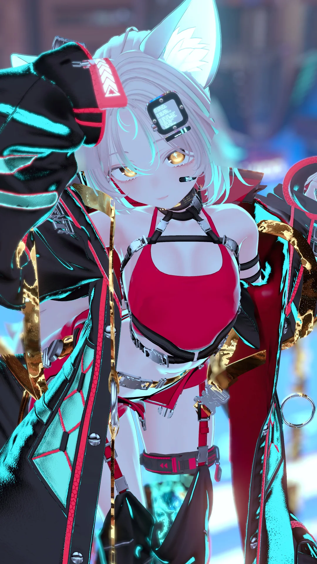 原色強めサイバーパンク 【瞳】 Space Starをベースに黄昏の微睡のマットキャップを使用 【前髪】 mohumohu bob 【後ろ髪】 3Edge Ponytail