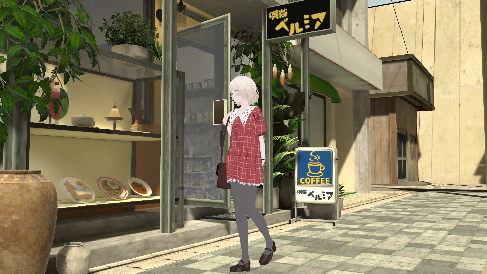 『テーマ:Used』リアクロ集会参加コーデです。 今回は設定細かめに”喫茶ベルミアに通う古着屋さんめぐりが好きな女の子”にしてみました。 喫茶ベルミアの前に立つとコーデが完成します♪ 撮影ワールド:喫茶ベルミア https://vrchat.com/home/launch?worldId=wrld_6b360717-776a-4e5d-a7f9-622fd0a4f0be