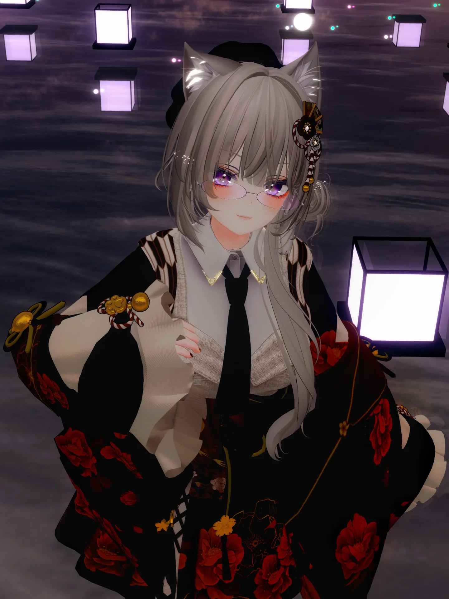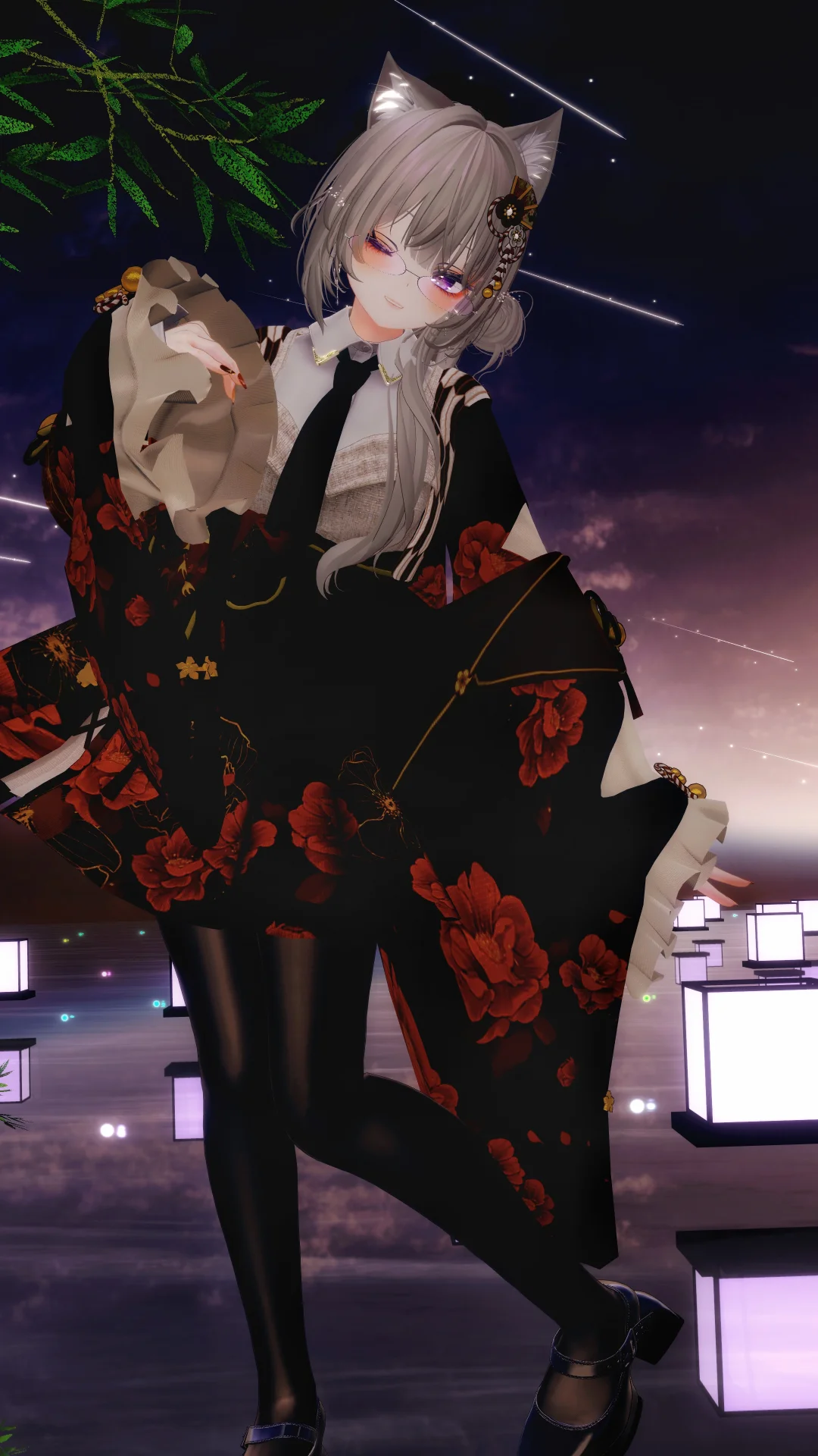 超かぐや姫!のライブがVRCで行われる!ということで、ツクヨミっぽい改変をしてみました。 メイクも目元を紅くするやつ! こういう服装のジャンルってなんていうんでしょうね… 和服と洋服のミックスみたいな… やったこと無いタイプの改変だったので、組合せ悩みました!