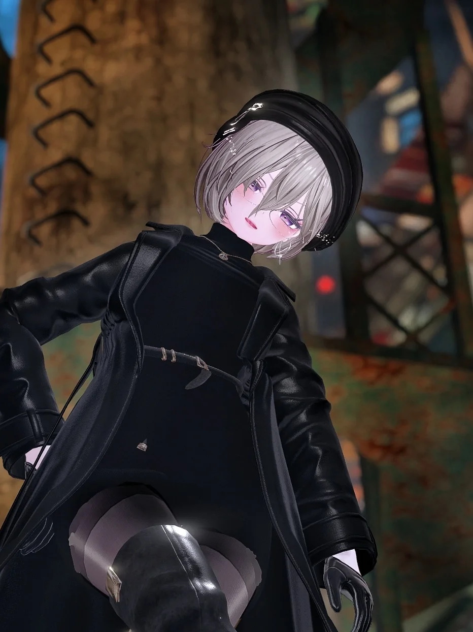 vketの九龍帝国が良すぎたので、似合いそうな改変を…と作ったもの 映画に出てきそうないかにもな女マフィアコーデ! レザーのロングコートにタイトなニットワンピ、ニーハイブーツとフルブラックでも異素材でメリハリ感を 手首だけちょっと見えてるとこがお気に入りです ワンピースとブーツはLAYON コートがvelvetsky 手袋はC.C.MATILDA の組み合わせ